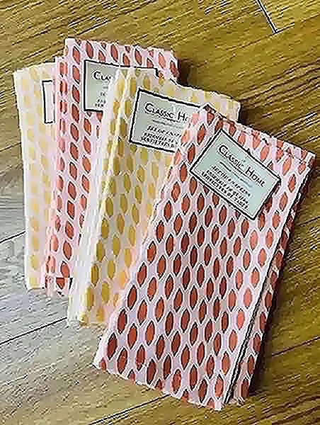 Four sets of cloth napkins (4 in each set) 16 napkins total! Colors are white, orange and yellow. Machine washable!