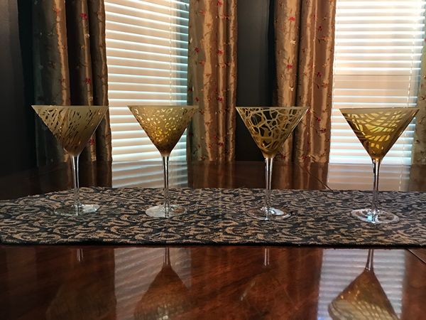 Set of 4 etched safari themed martini glasses