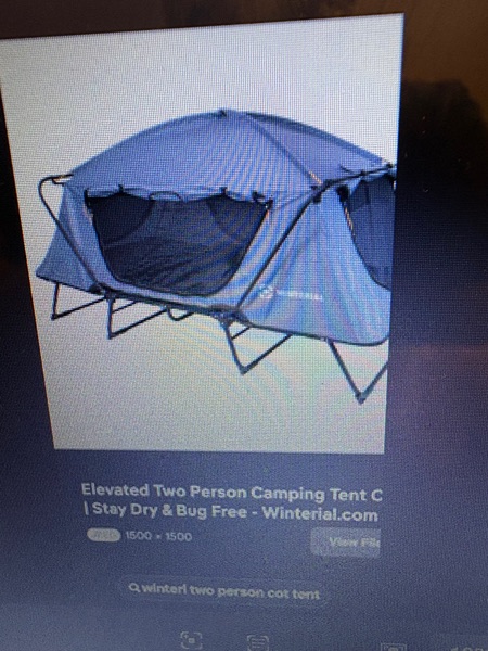 This 2-person cot tent is ideal for hunting, fishing, picnics, and camping in the backyard. It has been seldom used (about 4 times). It is in good condition, clean, and no tears. There is a video on You Tube (not mine) that demonstrate how to set it up, and I can demonstrate how to as well.. On You Tube search: winterial 2 man cot tent set up
