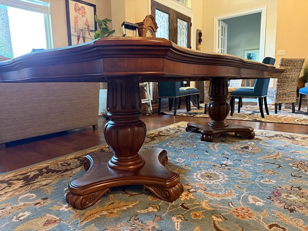 Table length with leaf 100", table width 47", table height 29.5 inches. Leaf Dimension 24"wide by 47" across