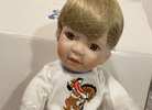 The Danbury Mint Billy the Cowboy Kid Linda Steele Lets Pretend Series porcelain doll by artist Elke Hutchens is a vintage collector's edition from 1992. This original boy doll features straight hair, light complexion, and blue eyes, making it a unique addition to any doll collection. The Danbury Mint brand and franchise add to the charm and authenticity of this classic piece, perfect for all occasions and adult collectors alike.