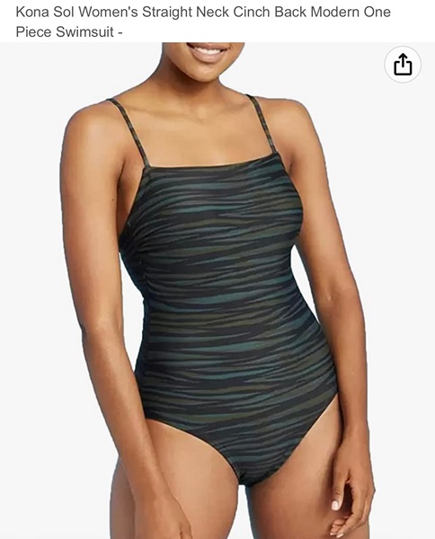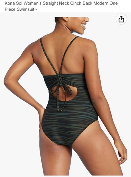 Brand is Kona Sol, size small (4-6). Black zebra stripe pattern, straight neck, spaghetti straps, cinch back with cut-out accent. New with tags from smoke free home. $10