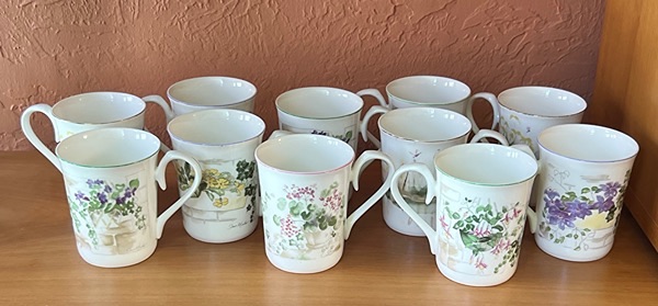 Beautiful floral design mugs, perfect for tea or coffee. Eleven mugs total…$50 total, firm