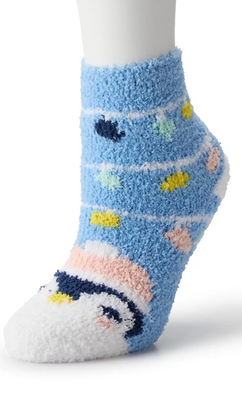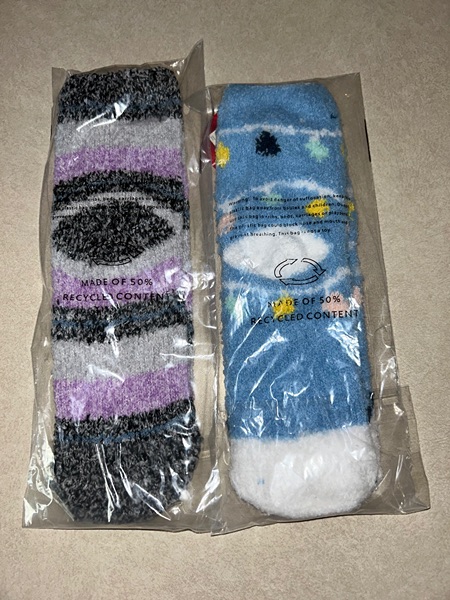 Cozy, soft, and fuzzy unicorn, penguin, and striped crew socks. New in package, fits ladies sock sizes 9-11. $5 each or $10/all