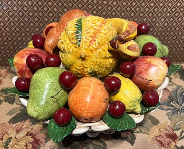 Italian glazed ceramic fruit basket figure Hand & Paint made.