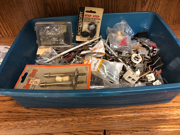 Miscellaneous items along with a storage tray for one price of $3.00.