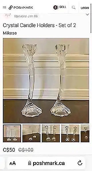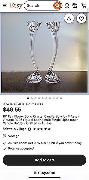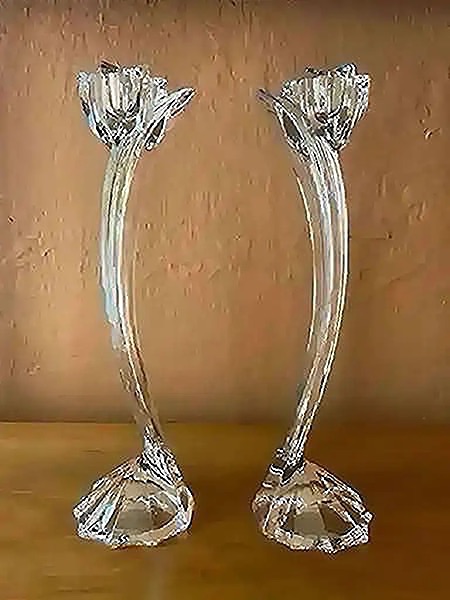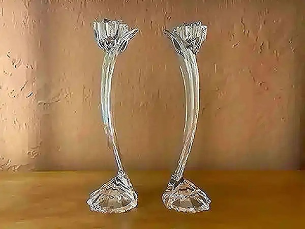 Crystal candlesticks by Mikasa “Flower Song” measures 10” tall, no chips or cracks…$40 firm