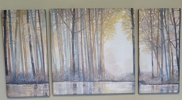 Tree forest scene - 3 piece canvas Soft Neutral colors.