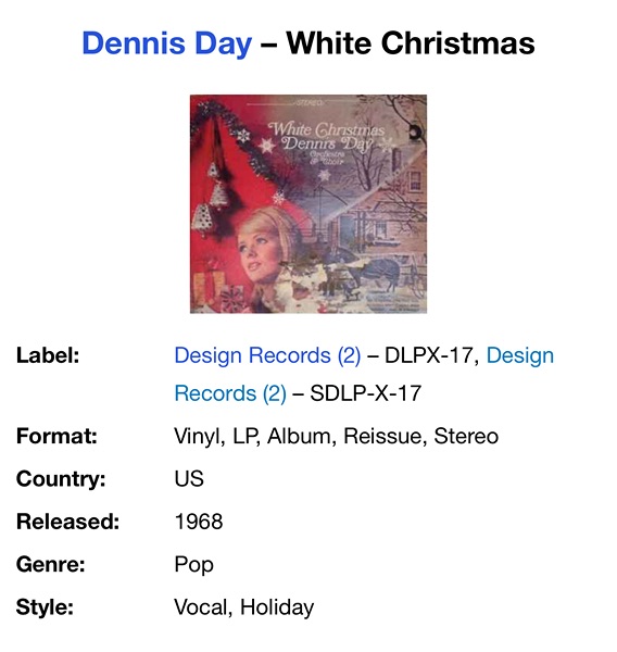 Vintage Christmas vinyl from the Dennis Day orchestra and choir, 1968. The jacket shows age, fading, and wear. The record has a few marks on it. However, the sound quality is excellent and record plays perfectly with no skips. $5