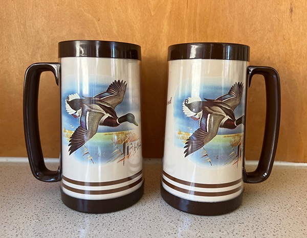 These are vintage Thermo-Serv insulated mugs featuring a mallard duck design by artist Les Kouba...$20 total, firm