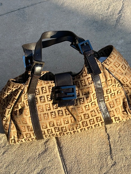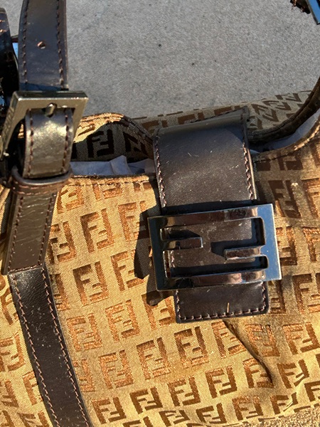 insde does have some makeup on the bottom but no rips or tears. All zippers and hardware beautiful. Leather straps in great condition. Vintage piece with signs of wear.