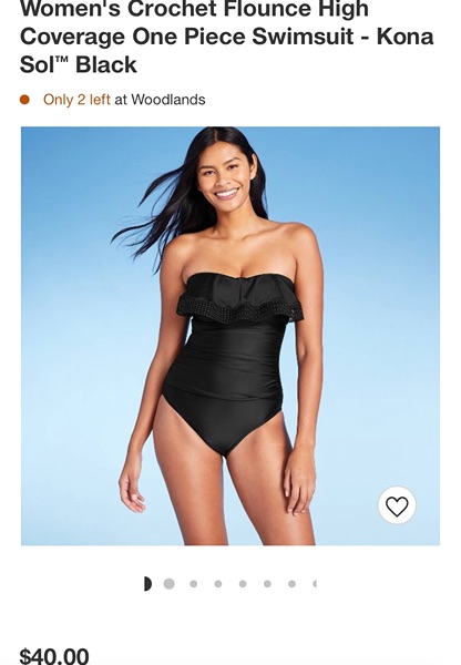 Brand is Kona Sol, size small (4-6). Bandeau style with crochet ruffle, adjustable and removable straps, sewn in cups, high coverage. New with tags, smoke free home. $10
