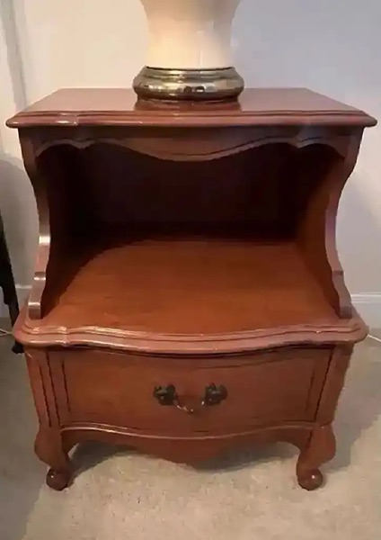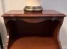 Elegant, French Provincial solid wood end table or nightstand with drawer and open shelf.