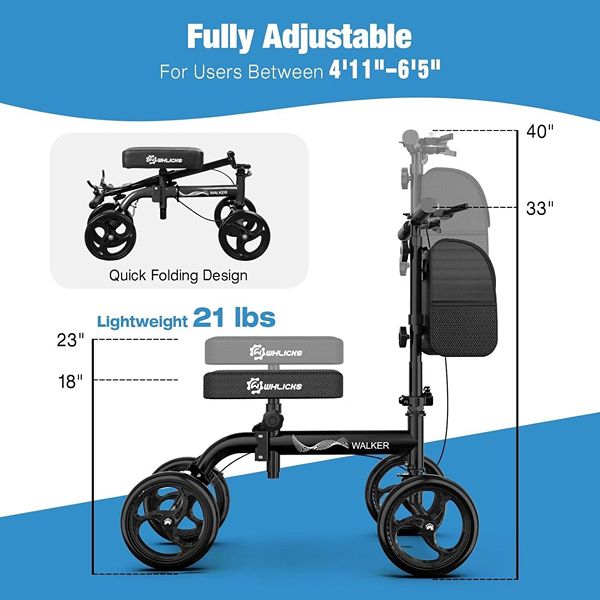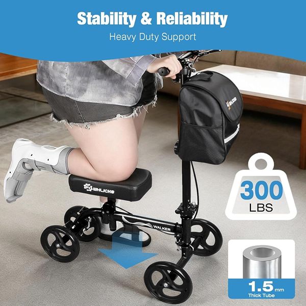 Whllicks Knee Scooter for Adults Foldable, Steerable - Black - Supports 300 lbs NIB