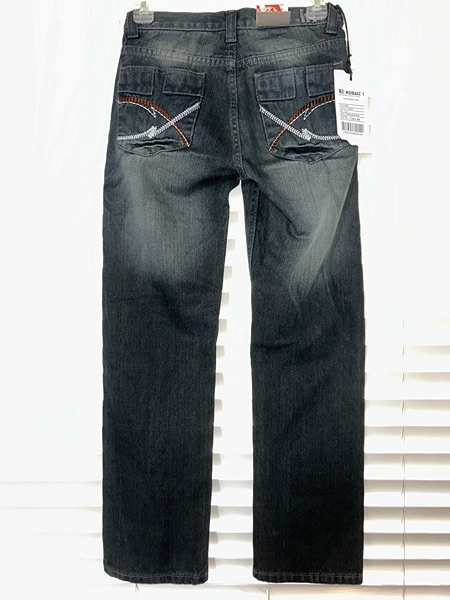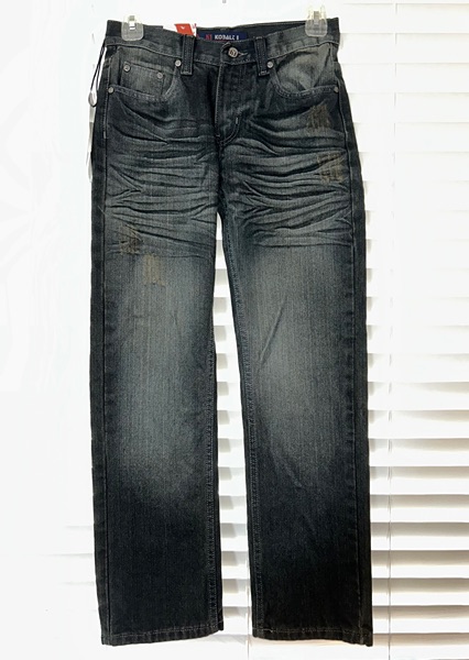 Boys size 12 jeans, straight cut, with inseam of about 26.5 inches. The color on the tag is "medium bronze" but these look like a weathered black with a few bronze patches on the front of each leg. 100% cotton. New with tags from smoke free home. $15