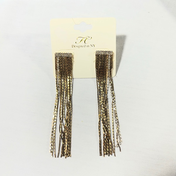FC brand 3” Chain Drop Dangle gold tone Earrings With single row of Rhinestone Accent as well as top band. These are post earrings. “Night out “ style.