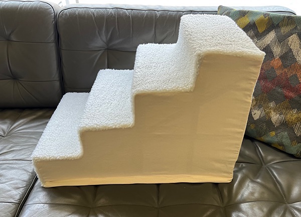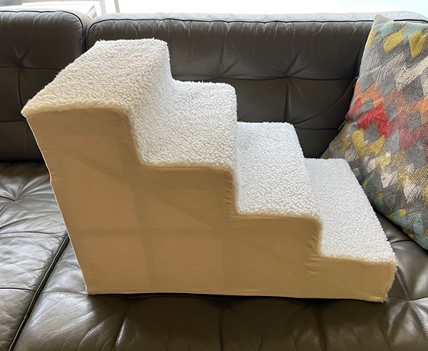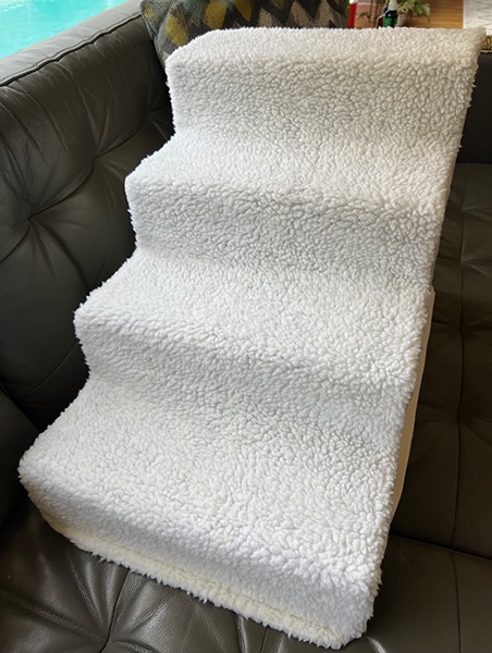 Creamy white, soft fleece pet stairs for easy access to furniture.  Cover is removable and washable. Approx. 22” x 14” x 15”. Barely used and recently washed. Last pics show similar items...$25 firm