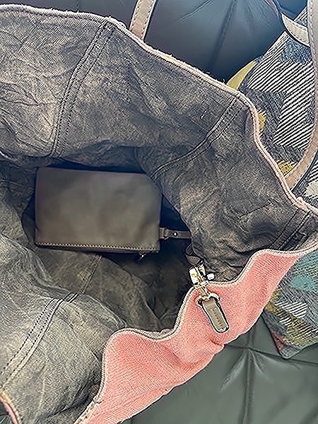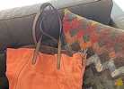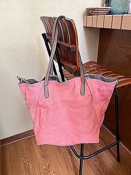 Coral canvas tote bag with faux leather straps. Reversible and comes with attached coin purse…$25 firm