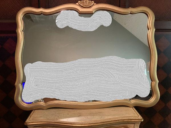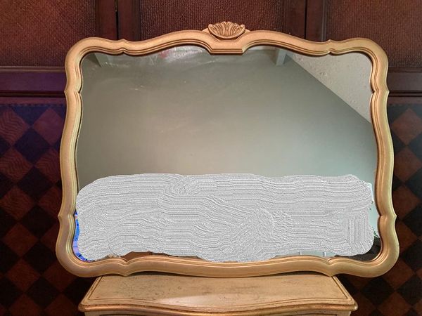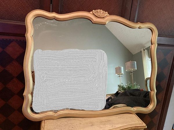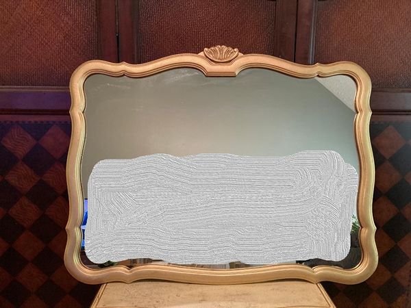 Lovely vintage French country No. 6 gilded gold crown decorative mirror. It's perfect for over an entry console, over mantle or above your dresser or just to bring light into your space. Comes ready to hang with 2 "D" rings. Images reflected in the mirror were photo shopped out. The mirror glass is in perfect condition.