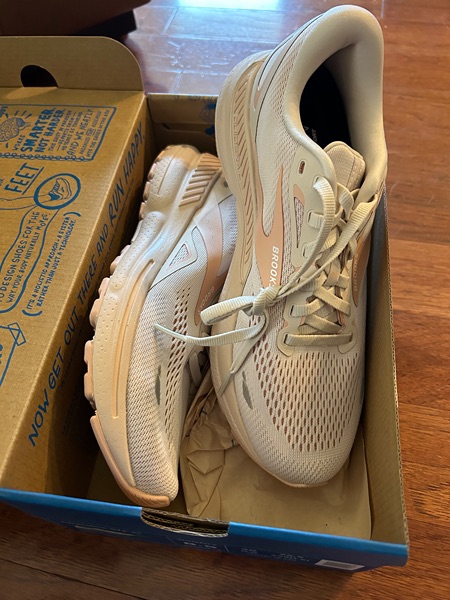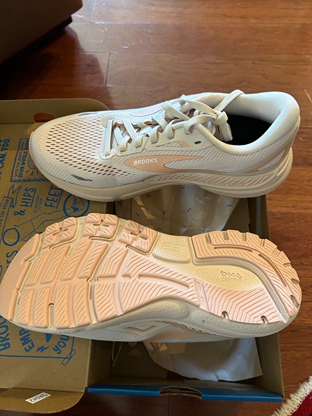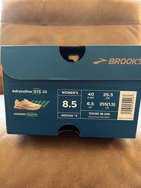 New, never worn Brooks running shoes sized 8.5. Bought to have back up pair as my favorite shoes but cannot wear style now with new orthotic inserts. Cash only.
