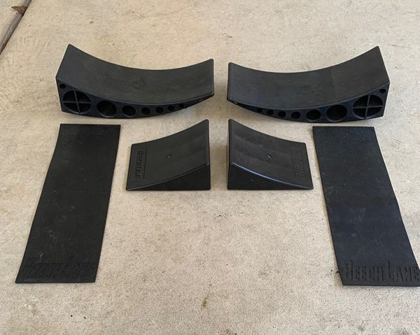 Beech Lane camper leveler 2 pack.  Includes 2 levelers, 2 chocks and 2 rubber grip mates.  Used only once with my old trailer.  Bought a new travel and no longer need these types of levelers.  Sold as is and all together.