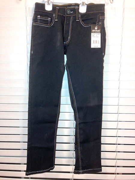 Boys size 8 black skinny jeans from Stylo Dnm Engineering brand. Features 5-pocket design, button/zip closure, and light contrast stitching. New with tags from smoke free home. $12