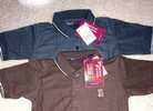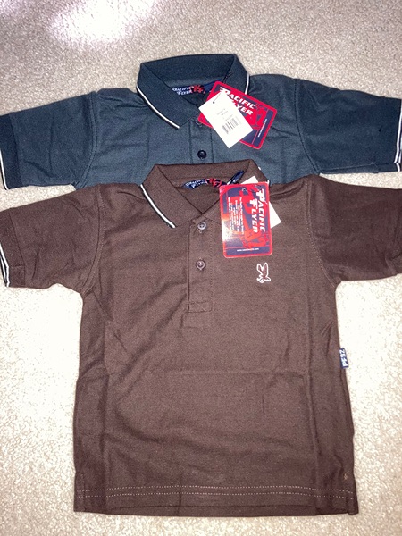 Hula Hooping Dinos short sleeve button-down, size 2T. Stretch material. Solid color polo style shirts. Brand is Pacific Flyer. One is chocolate color, one is black. Size 2. All shirts new with tags from smoke free home. $8/each or $15/all.