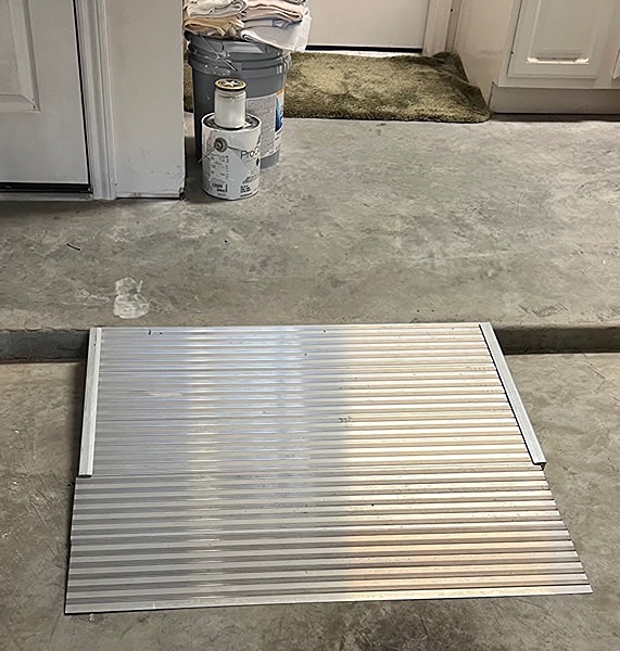 Durable aluminum threshold ramp for easy access. Adjustable height. Approx. 30 1/2” length x 36”wide. Retails for more than twice as much…$100 firm