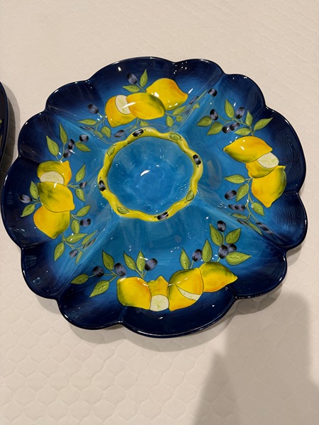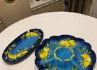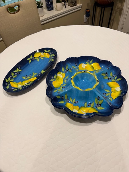 Two large serving dishes by Laurie Gates...originally purchased at Dillards for almost 85.00 dollars. In shades of blue with lemons. In excellent condition asking 20.00 for both