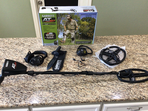 Garrett AT-Max metal detector with access., two coils, two headphones, 1 wireless and 1 wired., digging tool, usb, original box and hat, in perfect working condition.