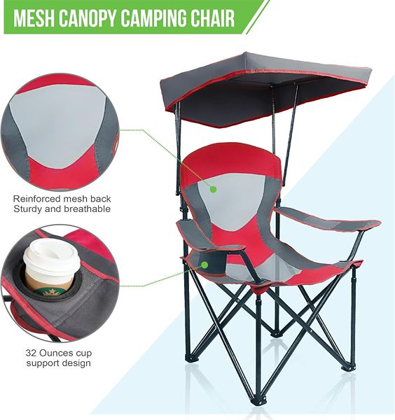 ALPHA CAMP Heavy Duty Canopy Camping Chair, 350 lbs Capacity Oversized Folding Chair with Adjustable Sunshade.