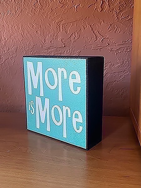 Turquoise decorative wooden sign with 'More is More' text. New! 6 x 6 square…$8 firm