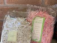 Mr Rabbit holds a basket of plastic eggs. Small floral decoration exudes the coming of spring. TAKE ALl OF THESE FOR ONE PRICE OF $2.00.