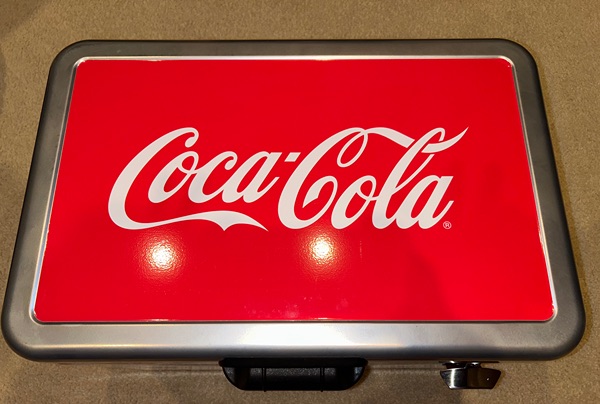 Brand new, never used. Graphics vary slightly from stock photo, but features, dimensions, capacity, etc. are all the same. Fill it with Coca Cola merch to make a great gift. Smoke free home. $125