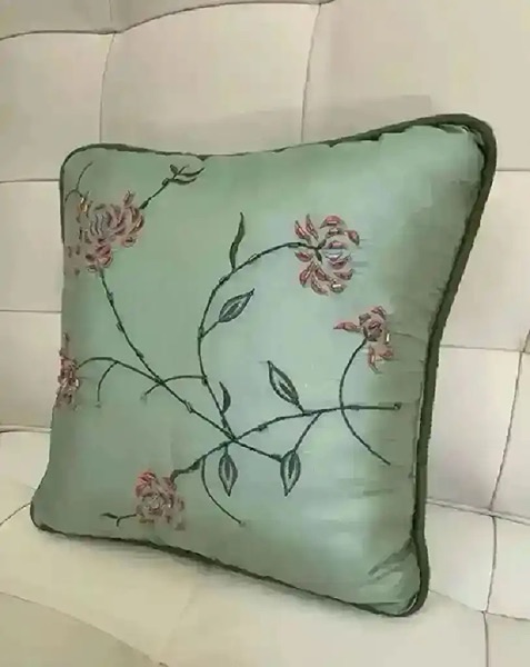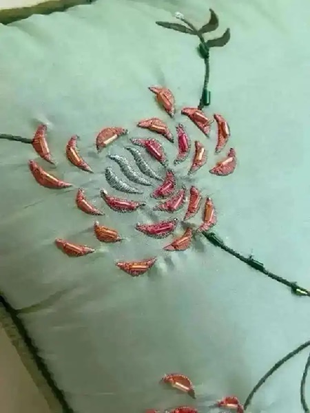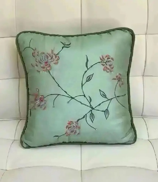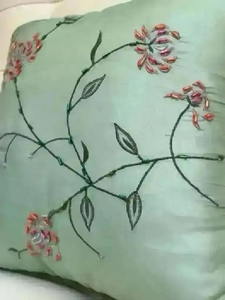 Beaded silk pillow with floral embroidery