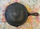 Unmarked, as far as I can tell. Measures 10” across without handle. Very heavy!…$50 FIRM