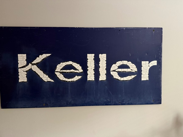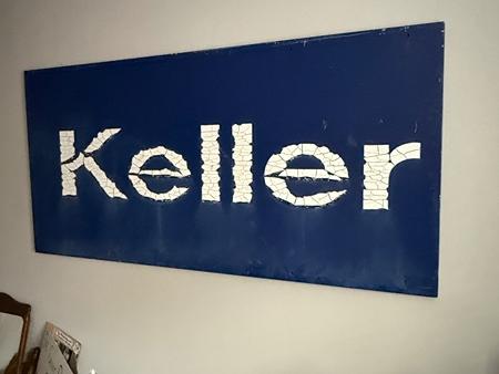 Large, metal antique Sign. 70"x34". Bought in Round Top years ago.