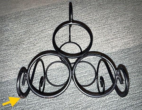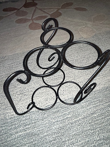 Iron tabletop/countertop wine holder. Holds 3 bottles. Good condition with some flaws in the finish (pictured), from smoke free home. $5