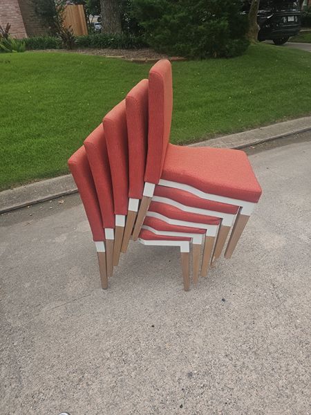 Nice, never used stacking meeting room chairs, could be used as casual dining chair. Price is per each. Retail for 275+ ea. Ordered for hotel but ended up not wanting. Have 48 of these and will sell partial lots.