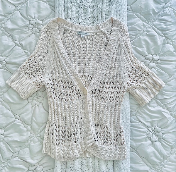 Beautiful crochet sweater by Banana Republic. Size small, excellent condition. Porch pickup in The Woodlands. $10.