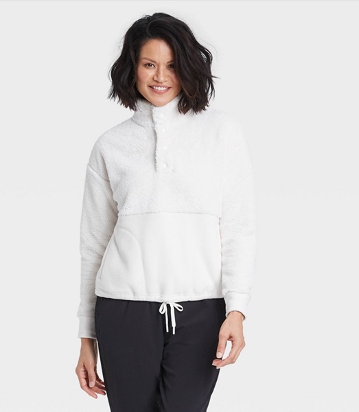 Cream Snap Front Sherpa Pullover