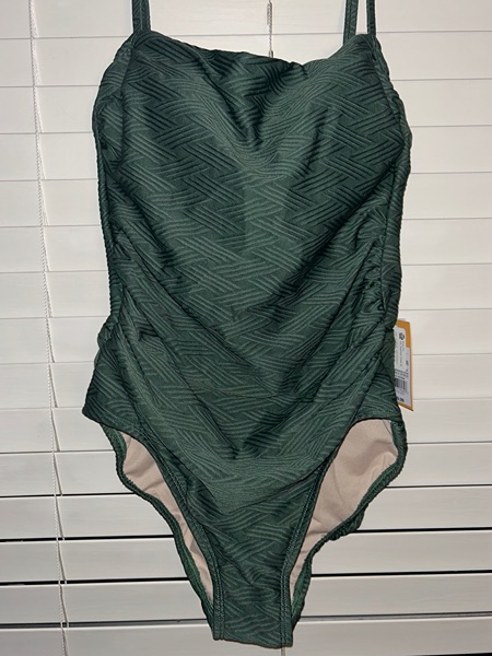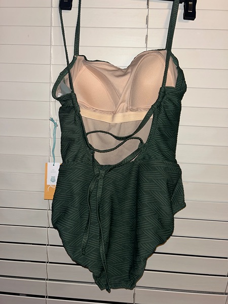 Brand is Kona Sol, size small. Square neckline, tie back closure, sewn in cups, adjustable straps, high coverage, basket weave pattern. New with tags from smoke free home. $10