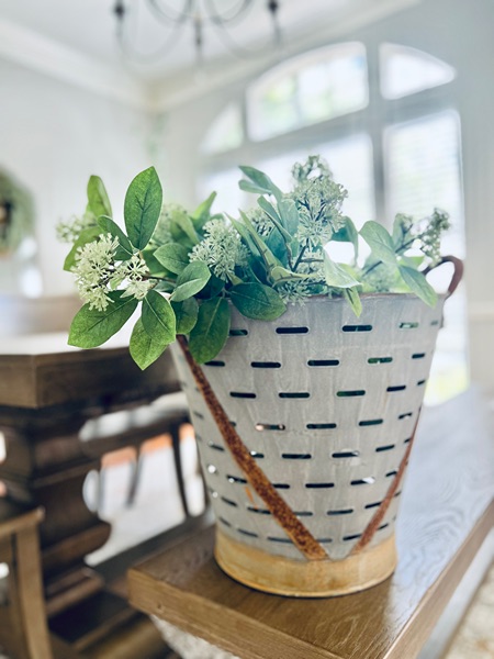This is a large, gorgeous olive bucket with greenery included. $30, porch pickup in The Woodlands.