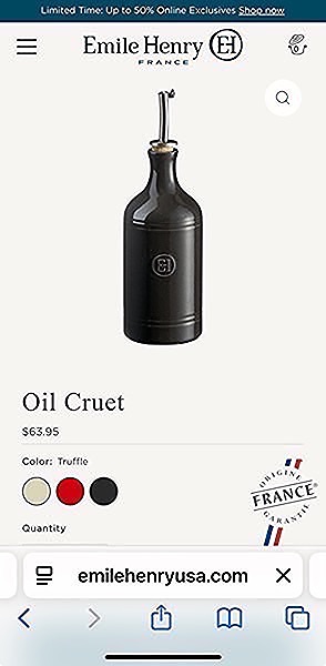 The equally functional & beautiful Oil Cruet dresses up your countertop while the easy flow spout provides a continuous, controllable stream of oil. The oil cruet preserves and protects oil from damaging light and heat that may disrupt the flavor of the oil and you can precisely pour your desired amount, and the anti-drip pourer remains clean. Our original & timeless colors brighten up the authentic design of this oil cruet, and add a splash of color to your countertop or table.