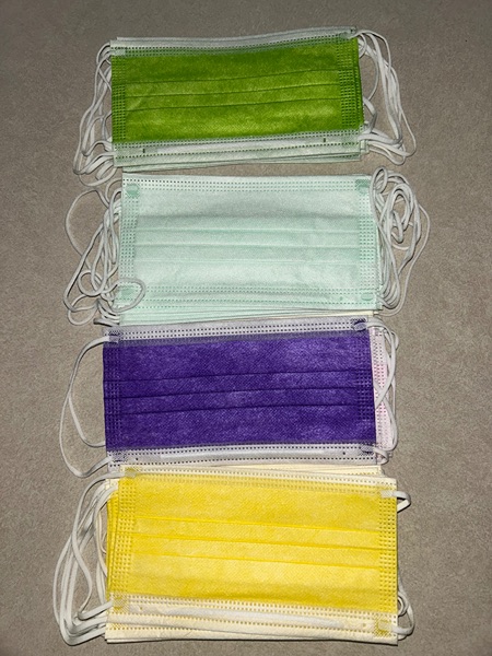 One bag of colored face masks, not individually wrapped, 31 count.