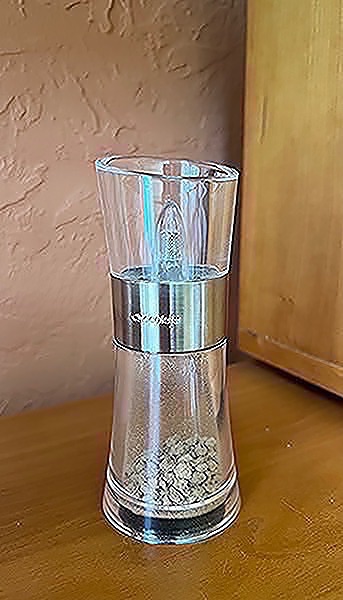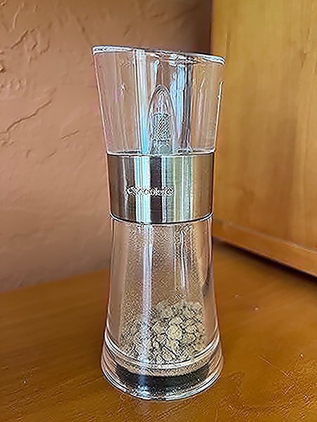Clear acrylic tabletop chocolate grinder with stainless steel accents by Cole & Mason.  Never used- came with cocoa.