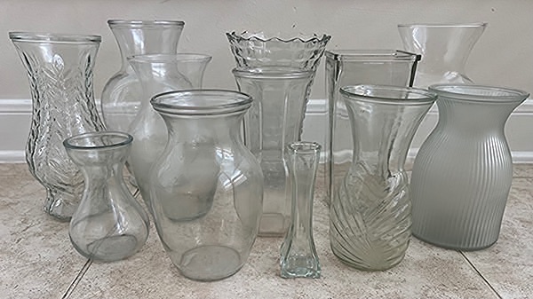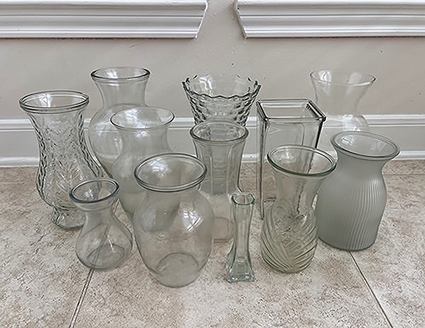 Assorted glass vases in various shapes and sizes. Twelve vases…$20 total, firm