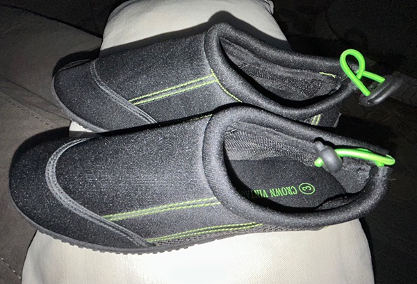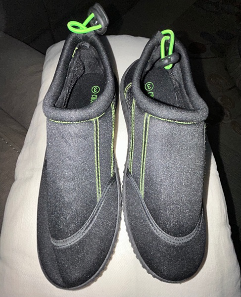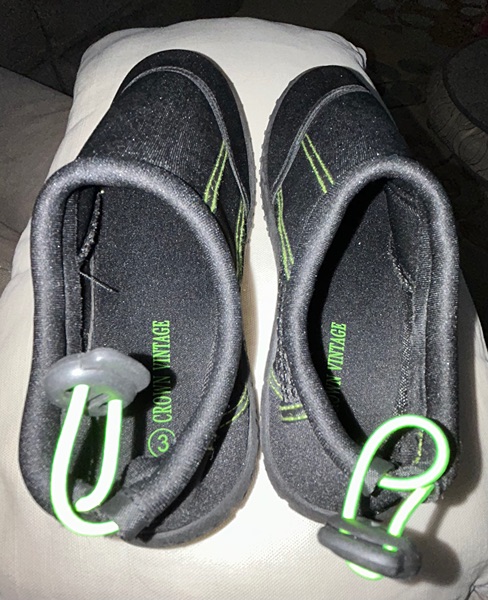 Crown Vintage brand children's water shoes, size 3. Black with green accents. New in Box. $10