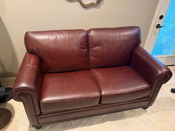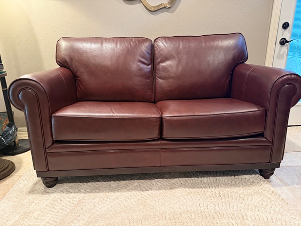 Martha Stewart loveseat. Burgundy leather