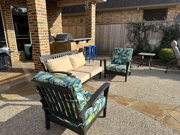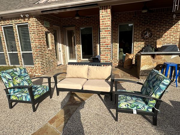 3 Piece patio set (love seat and chairs) with cusions. Solid wood set in good condition. Dimensions to follow in update.